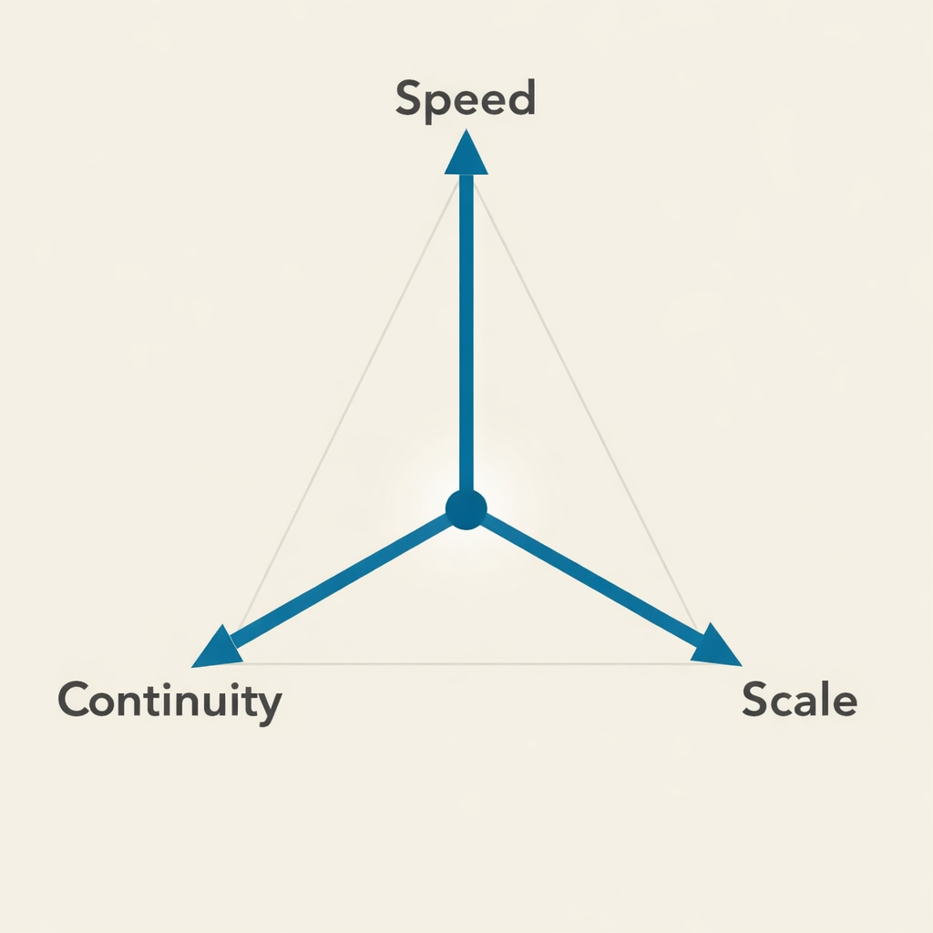 Its architecture is built across three reinforcing vectors: speed, scale, and continuity — allowing capability to expand without proportionally expanding cost.