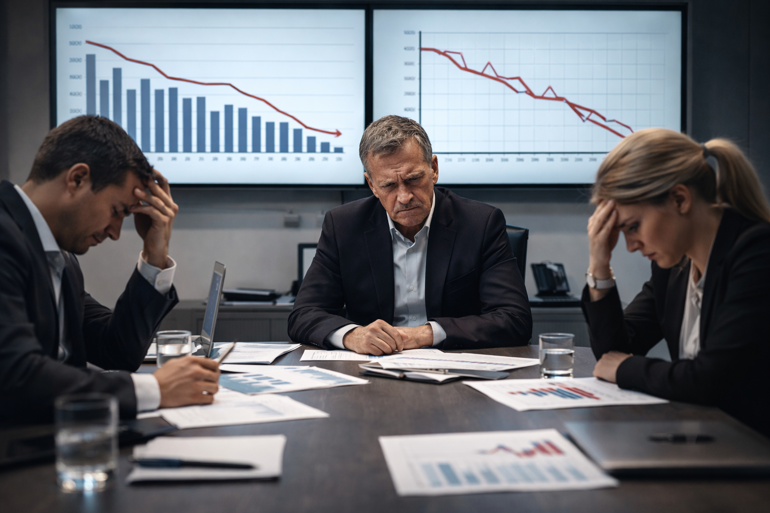 Effort increases, but momentum does not. Once an organization turns defensive, recovery usually requires external intervention rather than internal movement.